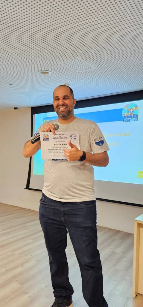 Neste último sábado (14/10/2023), as palestras ocorreram 100% presenciais, onde contamos com 4 temas bem importantes para a área de dados, abordando desde dicas sobre o início de carreira à privacidade dos dados.