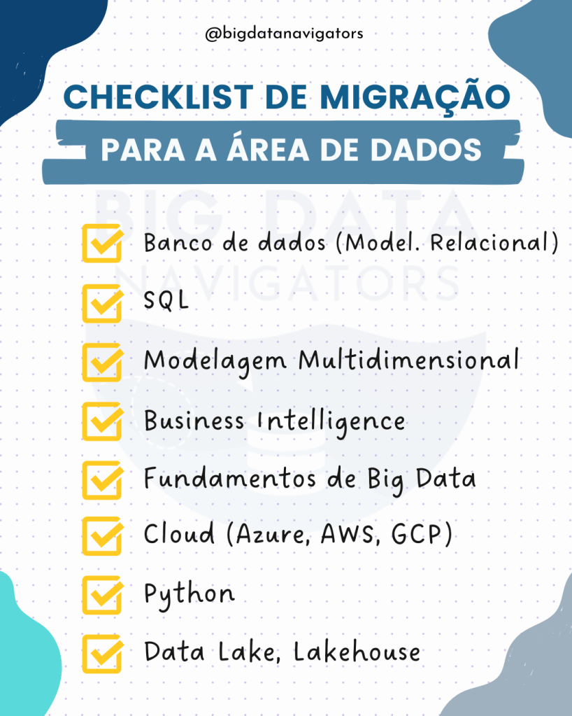 Você já se pegou perguntando o que deveria estudar para conseguir realizar sua migração para a área de dados? Neste post eu trouxe alguns itens de estudos que são de suma importância para a realização de uma migração ou até mesmo iniciar na área sem ter experiências (mas com muito estudo).