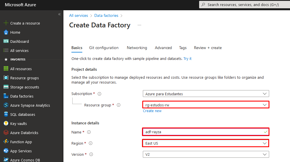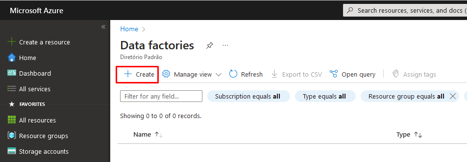 Provisionando o Azure Data Factory