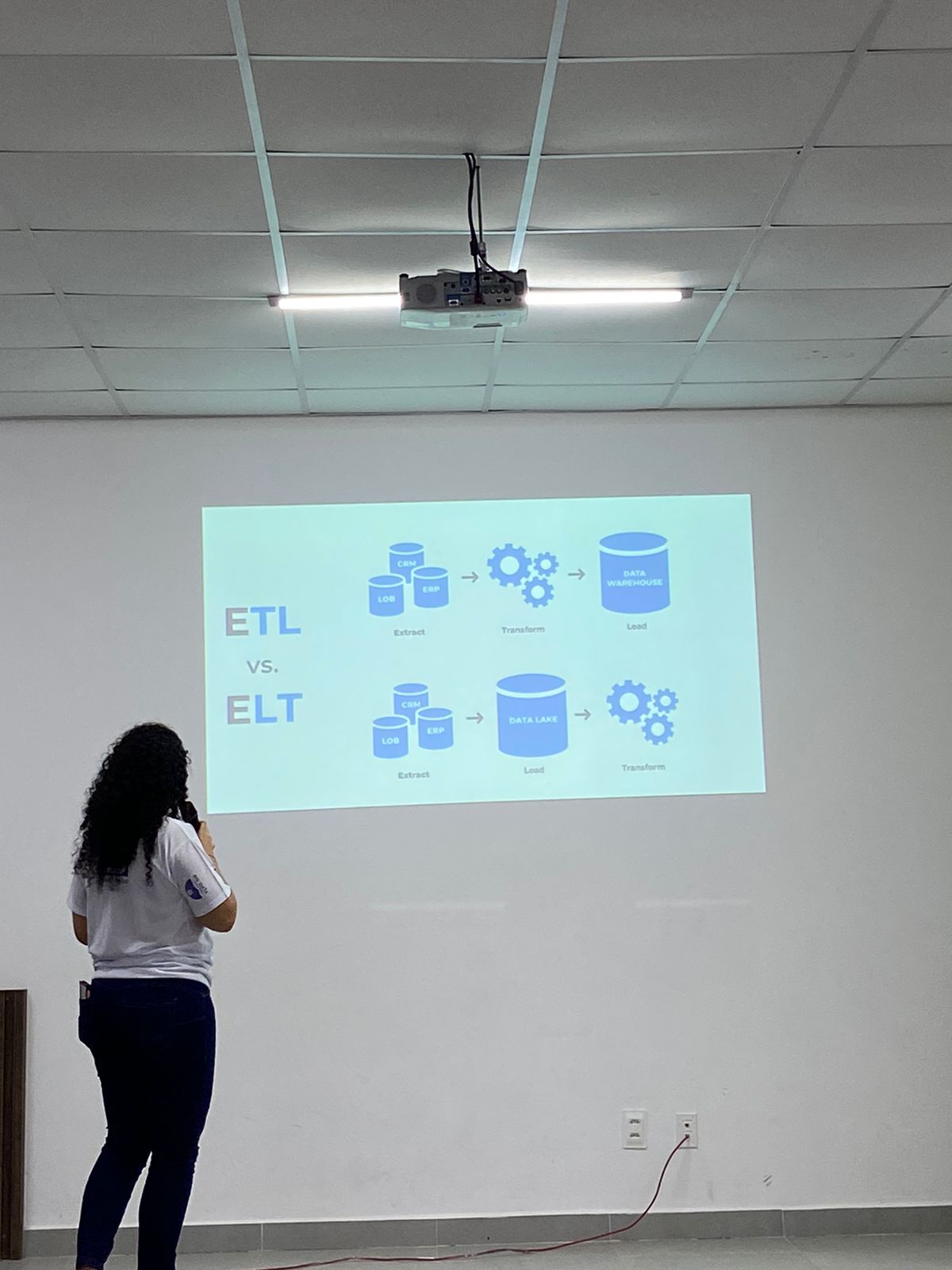 Inicialmente apresentei um pouco sobre a área da Engenharia de Dados, o conceito do ETL, Data Warehouse, Data Lake, com algumas analogias para facilitar o entendimento de quem ainda não conhece.