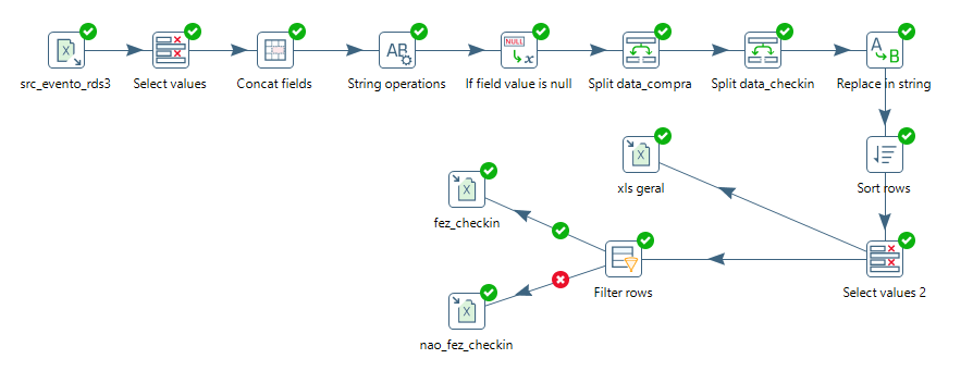 Tanto no Pentaho, como no Databricks, executei a mesma estratégia de transformação dos dados, com algumas particularidades para exemplificação de possibilidades.